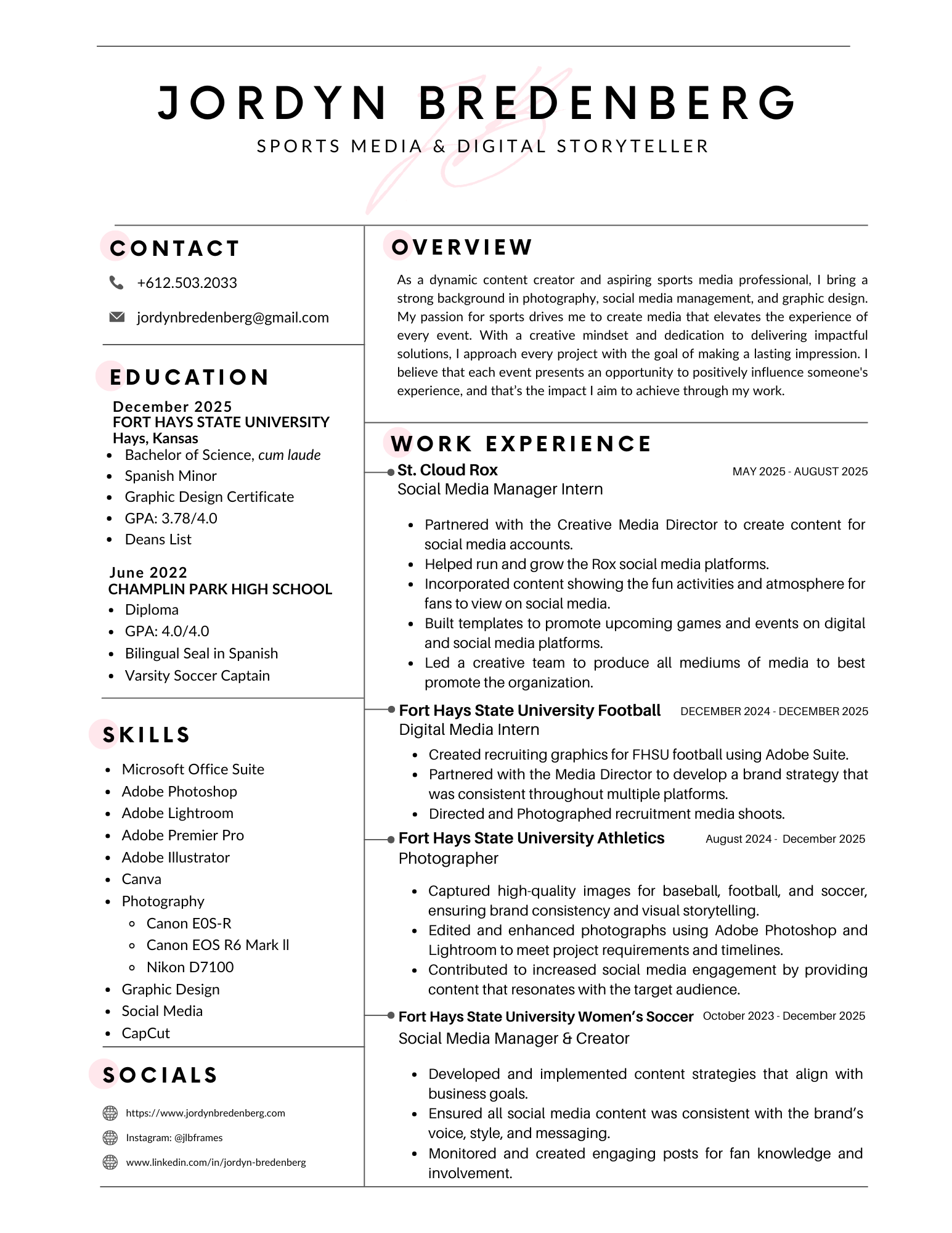 Experience with Adobe Creative Cloud, CapCut, Cinema 4D, and Canva software.